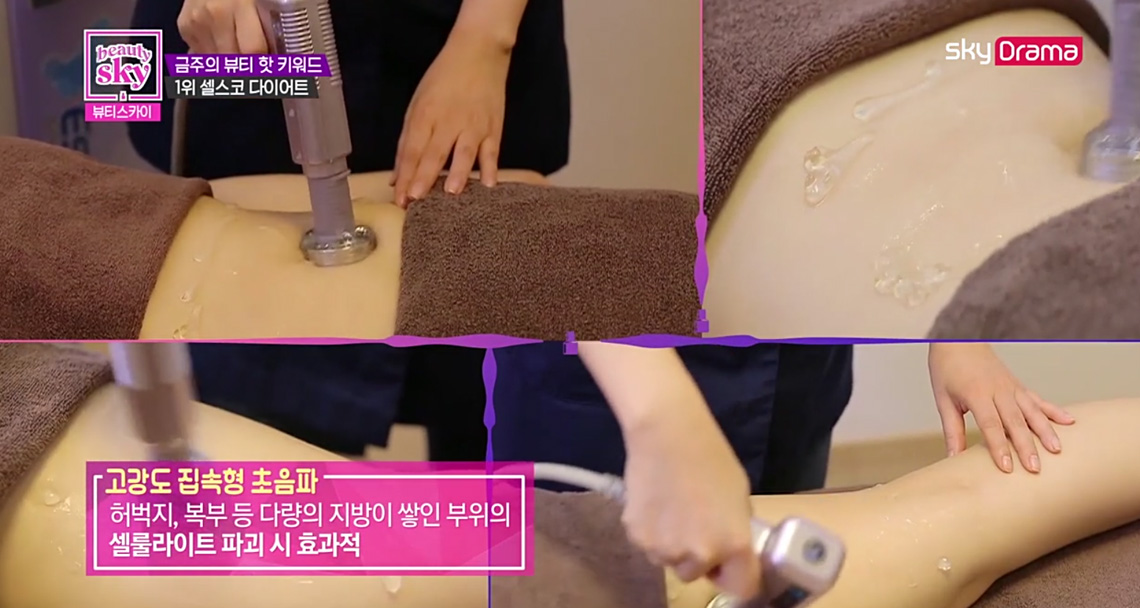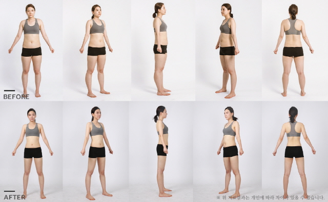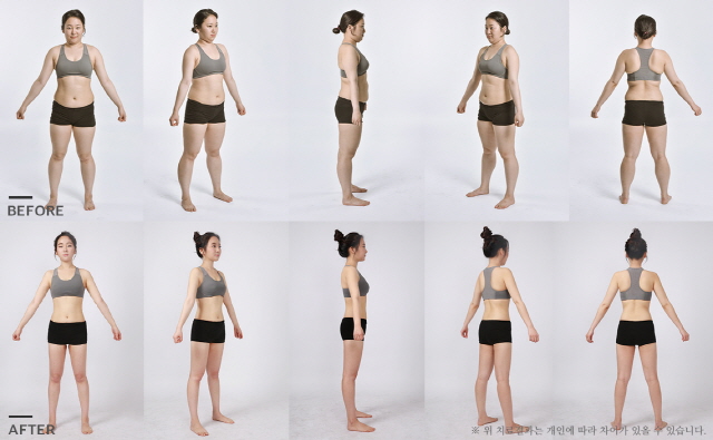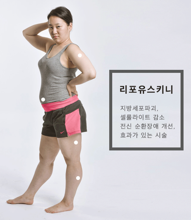 김희선씨 같은 경우는 특히 허벅지가 다른 부위에 비해서 두껍고, 셀룰라이트도 3단계 정도 진행된 상태였습니다. 셀룰라이트를 없애서, 피부를 매끈하게 만들어 주면서 사이즈까지 감소 시켜주는 리포유스키니 시술이 필요. 또 동글동글한 얼굴을 작고 여성스러운 라인으로 만들어 주는 광대 맥 주사 시술로 결정.