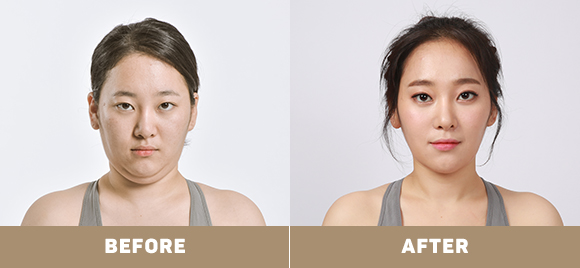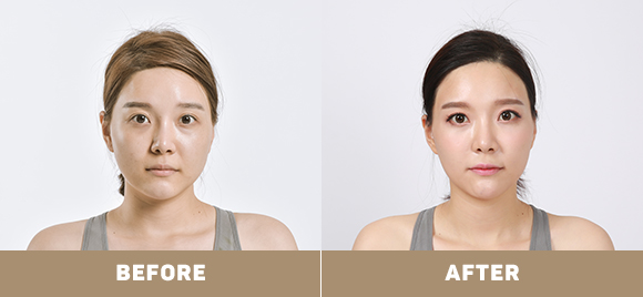 그리고 턱과 앞, 옆광대의 과도하게 발달된 근육을 축소시켜 울퉁불퉁한 윤곽 라인을 정리해줍니다.